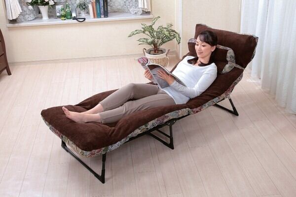 ●サイズ:[本体]使用時:(約)幅60×長さ150〜190×高さ25〜78cm、折りたたみ時:(約)幅60×奥行15×高さ71cm、[マット](約)幅65×長さ185×厚さ10cm、[枕](約)幅47×奥行23×高さ10cm