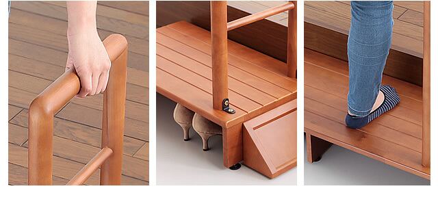 ●サイズ:(約)幅70(支え10cm含む)×奥行35×高さ75~76cm(踏み台高さ:14.5~15.5cm)