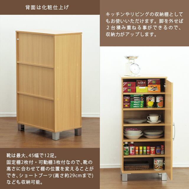 ● 固定棚2枚・可動棚3枚付きなので、靴の高さに合わせて棚の位置を変えることができ、ショートブーツ(高さ約29cm迄)なども収納可能。
