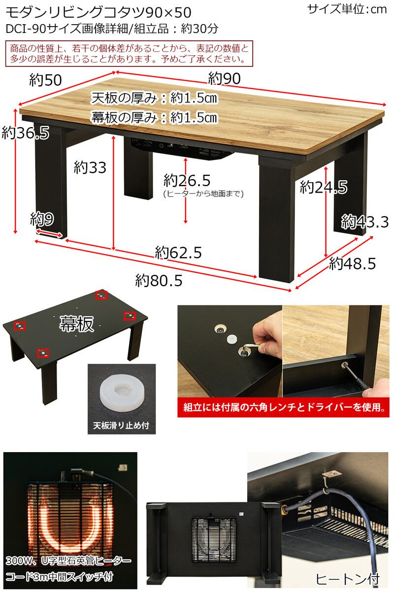 木目柄天板と黒い脚部のツートンカラーがオシャレなリビングコタツです