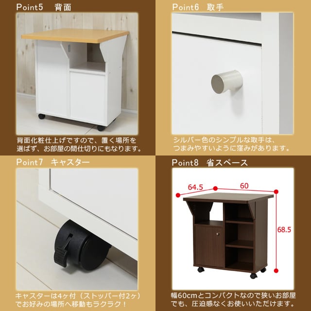 ●キャスター4ヶ付き(ストッパー付2ヶ)で移動が楽にできます。